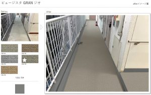 現場によっては、床長尺シートの柄はメーカーさんにシュミレーションして貰い