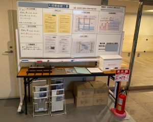 承認された見本は工事用掲示板付近に分かりやすく周知しております。