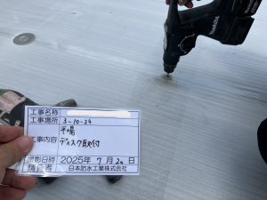 そこから固定したディスクと塩ビシートを熱溶着します。↓
